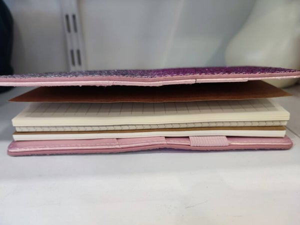 Un carnet pailletté, contenent 3 petit cahier changable.